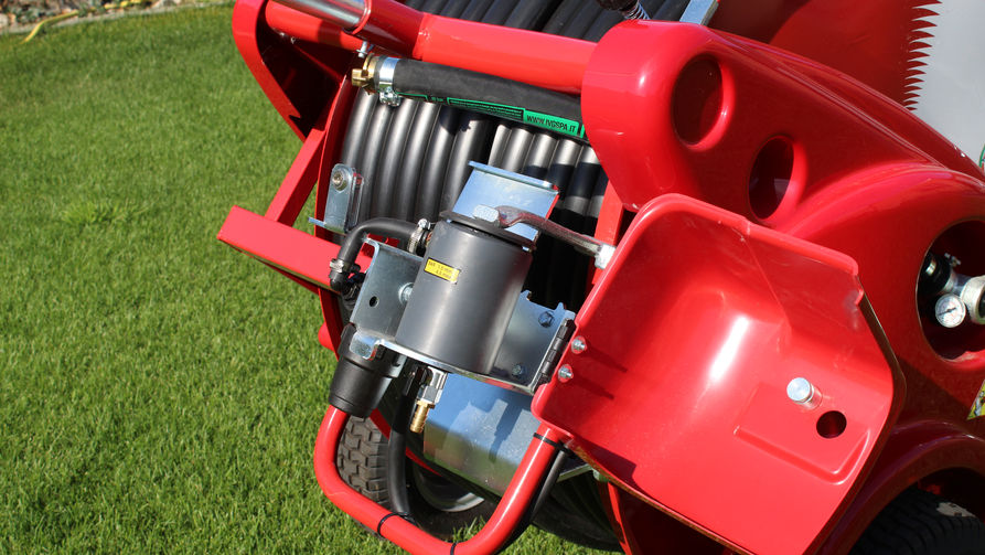 Zodra de PE slang volledig is opgerold wordt er automatisch een afsluiter in de waterstroom geactiveerd.